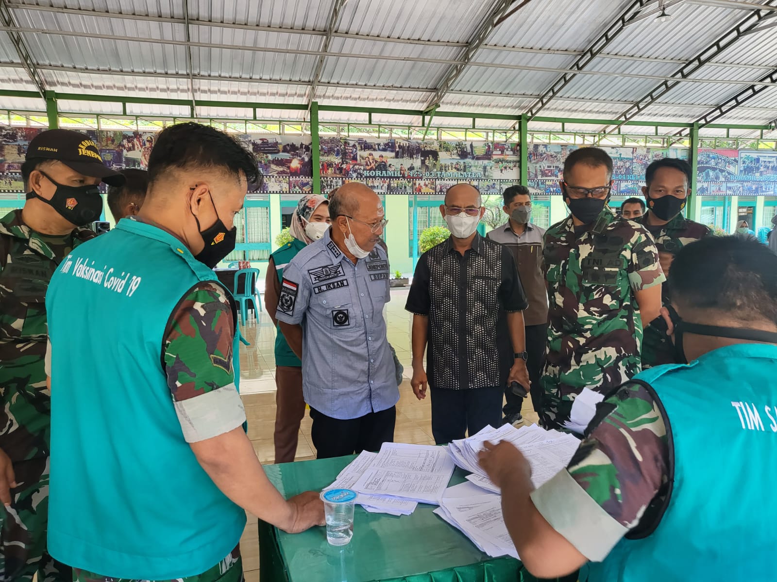 Dalam penyampaiannya, Dandim 1425 Letkol.Gustiawan yang menyambut kedatangan tim pemantau vaksin mengatakan bahwa vaksinasi kali ini kita lakukan sebagai bentuk dukungan terhadap langkah pemerintah dalam menyukseskan pekan vaksinasi covid 19.