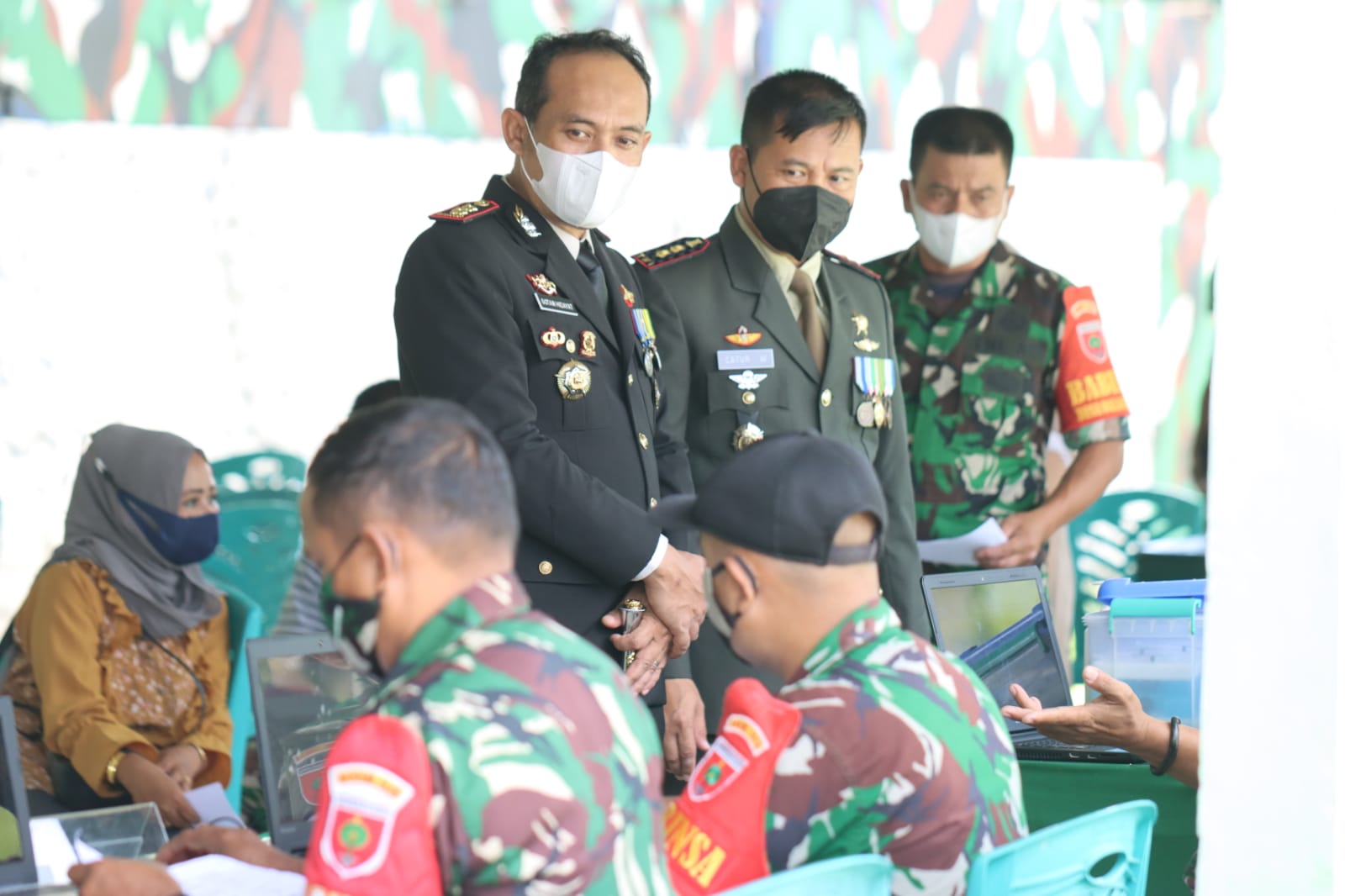 HALILINTARNEWS.id, TAKALAR – Kapolres Takalar AKBP Gotam Hidayat, S.I.K., M.Si meninjau pelaksanaan Vaksinasi Massal di Mako Kodim 1426/Takalar, Senin (28/02/2022).