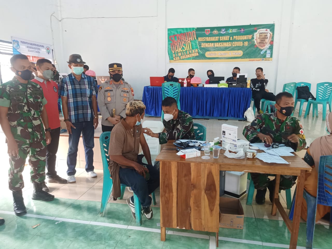 Serbuan vaksinasi yang diselenggarakan oleh Kodim I4II Bulukumba bersama Polres Bulukumba dan Pemerintah Kecamatan Bonto Tiro Bulukumba, sebagai upaya dalam percepatan capaian vaksinasi di wilayah Kabupaten Bulukumba pada khususnya dengan sasaran vaksinasi dari dosis pertama hingga dosis ke tiga ( Booster ) yang melibatkan tim vaksinator Kodim I4II dan Klinik Polres Bulukumba.