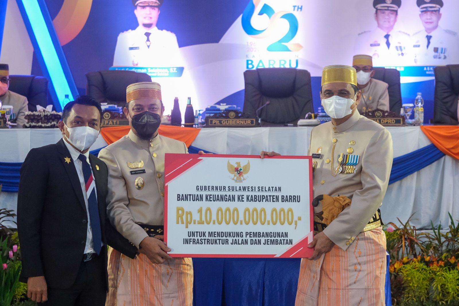 Sementara itu, Bupati Barru Suardi Saleh menyampaikan, mengakui pembangunan di Barru tidak lepas dari dukungan Plt Gubernur Sulsel, Andi Sudirman Sulaiman “Peran tersebut diwujudkan melalui program dan kegiatan pembangunan yang diinisiasi ke Kabupaten Barru. Alhamdulillah Bapak Gubernur, masyarakat kabupaten Barru sangat merasakan ada kepedulian yang besar dari Bapak Plt Gubernur Sulsel terhadap kemajuan Kabupaten Barru,” paparnya.