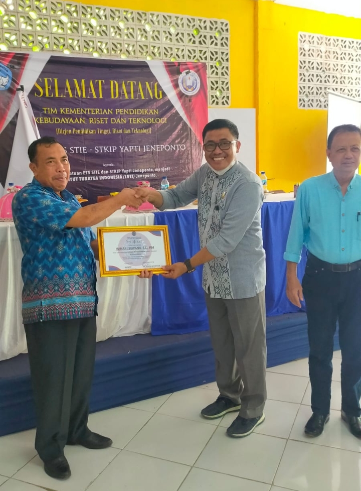 Kuliah Umum dan Rapat Kerja DPM, ditutup dengan pemberian sertifikat penghargaan dari Ketua STIE YAPTI Jeneponto kepada Ketua Komisi II DPRD Jeneponto sekaligus sesi foto bersama.