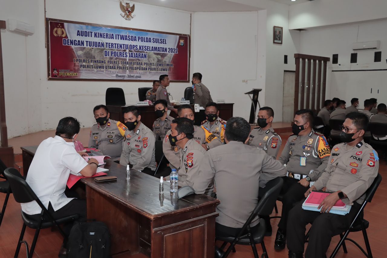 HALILINTARNEWS.id, PINRANG — Tim Audit Itwasda Polda Sulsel Sambangi Polres Pinrang dalam Rangka Audit kinerja dengan tujuan tertentu Operasi Keselamatan tahun 2022. Sabtu (5/3/2022)