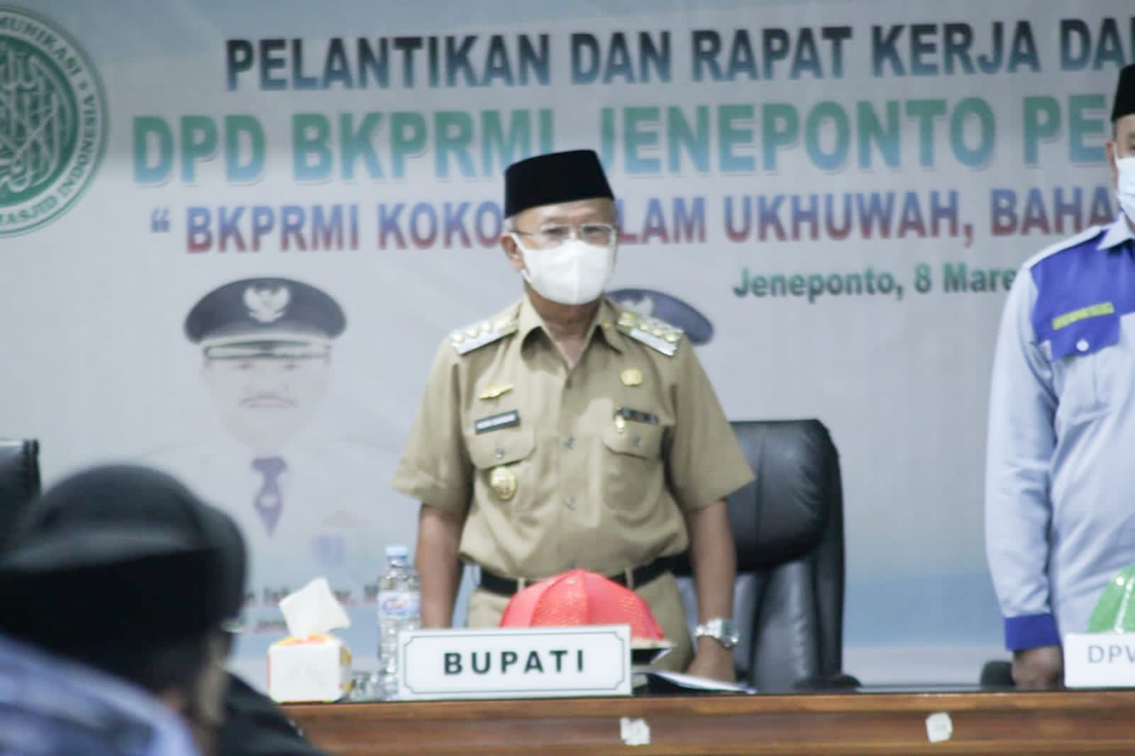 JENEPONTO, HALILINTARNEWS.id – Bupati Jeneponto, H. Iksan Iskandar hadiri pelantikan dan rapat kerja (Rakerda) ke-X dewan pengurus daerah badan komunikasi pengurus remaja masjid (DPD BKPRMI) kabupaten jeneponto periode 2022-2026.