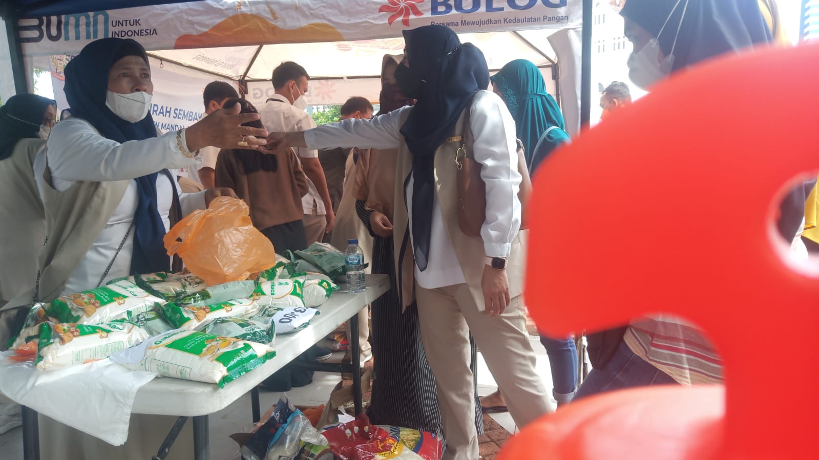 Sementara pantauan langsung AMBAE di booth penjualan, panitia menjual gula pasir merek ‘Maniskita’ kapasitas 1 Kg seharga Rp 13.000. Beras merek ‘Beraskita’ dengan kapasitas 10 Kg seharga Rp 102.000, sedangkan kapasitas 5 Kg dihargai Rp 49.000 untuk beras bermerek ‘Tani Makmur’.