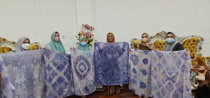 Bersama pengurus lainnya pada rabu (6/4/2022) ketua dekranasda takalar Dr. Hj. Irma Andriani.,S.Pi.,M.Si berkreasi menghasilkan motif shiborita yang memiliki nilai ekonomi.