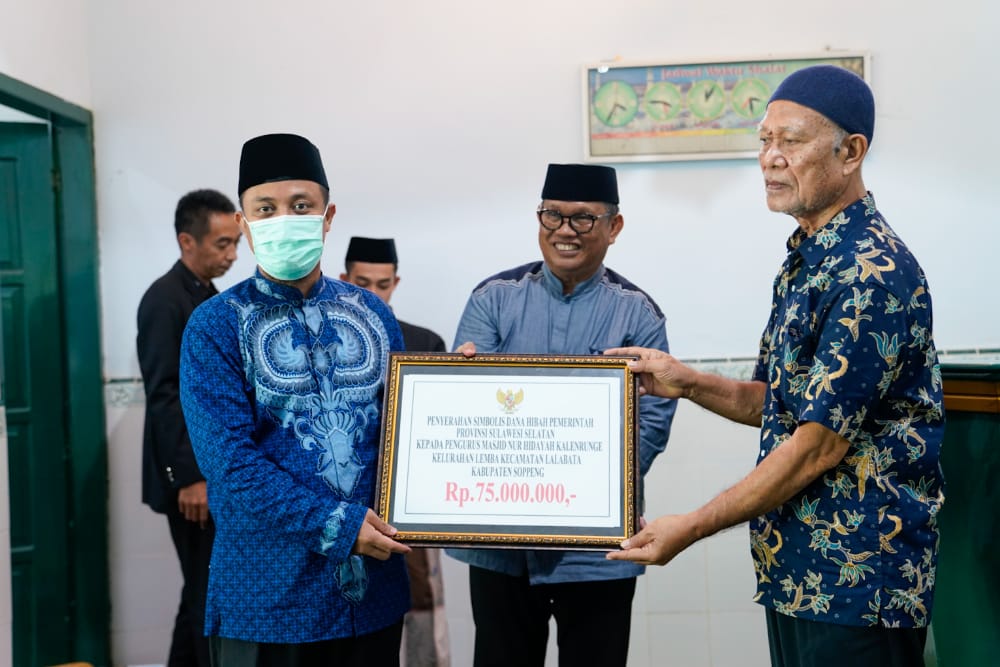 Selain itu, juga menyerahkan bantuan dana hibah sarana dan prasarana ibadah untuk Masjid Nurul Hidayah Kalenrunge, Kelurahan Lemba, Kecamatan Lalabata yang diserahkan kepada pengurus masjid. Hadir juga Waki Bupati Soppeng, Lutfi Halide menerima secara simbolis bantuan wakaf Quran.