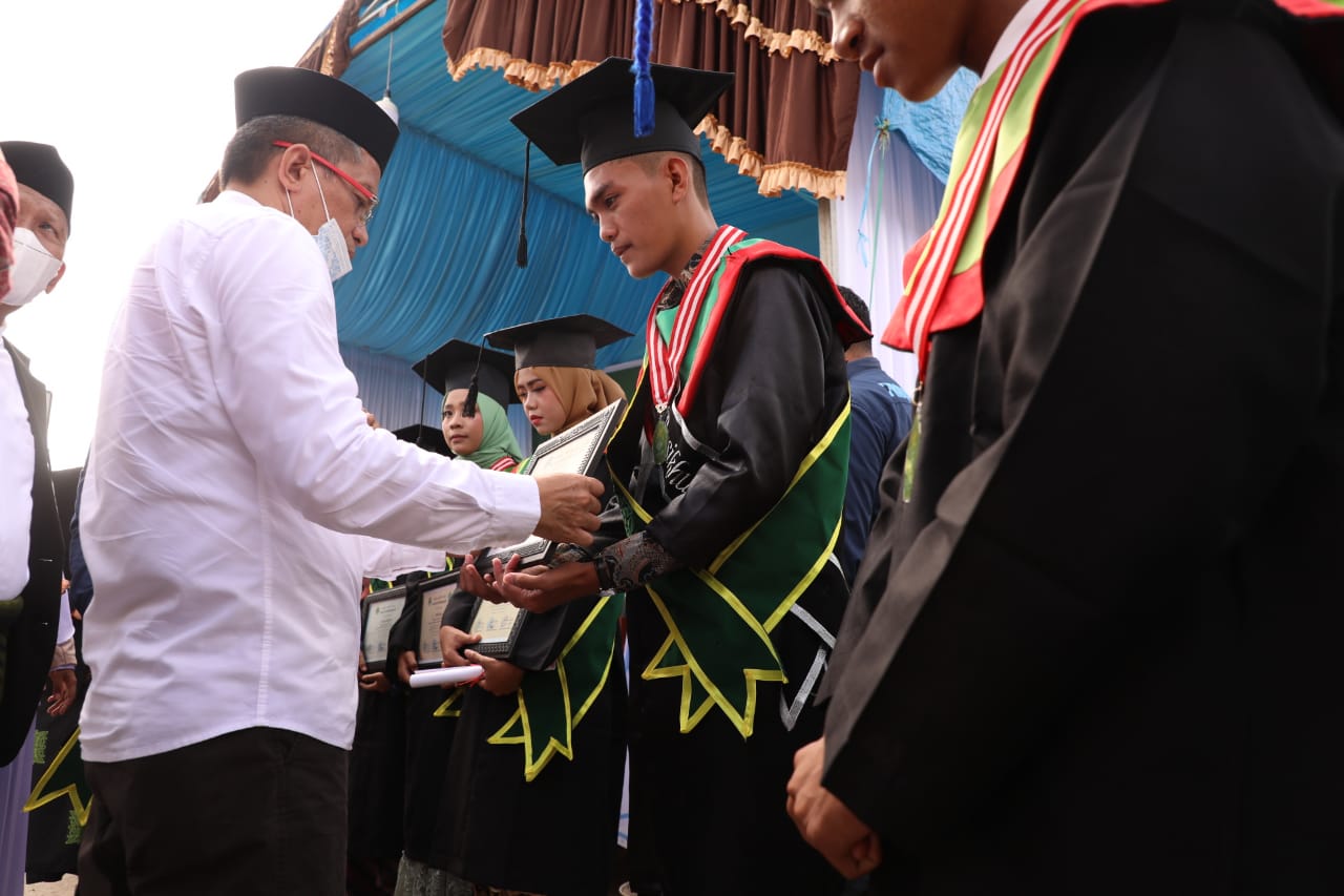 “Saya berharap kepada anak-anakku apa lagi yang mendapat peringkat lulusan terbaik sebagai penghafal Al-quran 30 juz saya akan berikan penghargaan, perlihatkan prestasi itu kepada orang tua. Ketika kita memiliki keunggulan yang terbaik, maka bukan kita yang mencari jabatan akan tetapi jabatan itu yang mencari kita”, kata Bupati dengan rasa penuh kebanggaan.