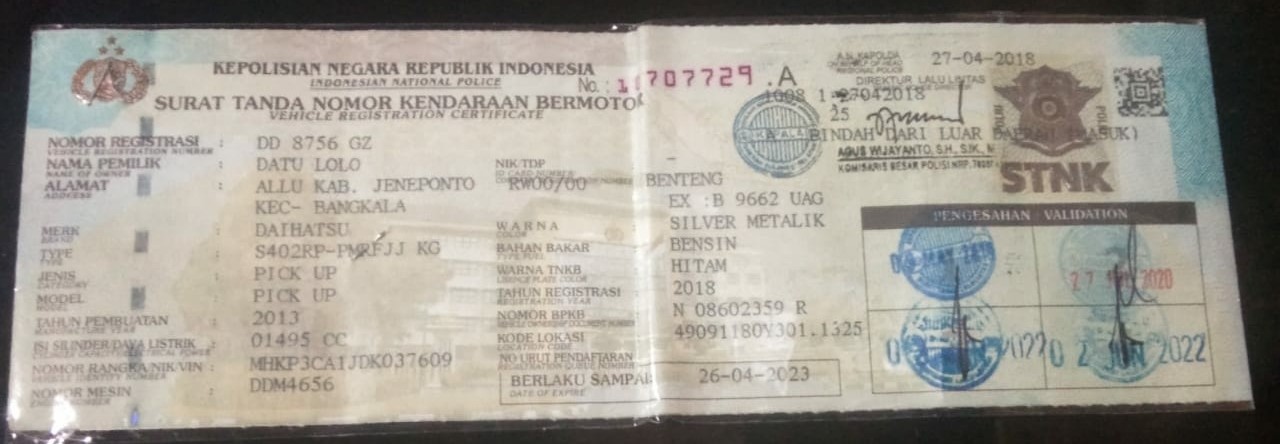 Menurutnya, BPKB itu diperkirakan hilang tercecer pada hari Senin tanggal 20-6-2022, diperkirakan tercecer sekitar Borong Untia, Kelurahan Benteng, Kec.Bangkala, sekitar Jam 12.00.