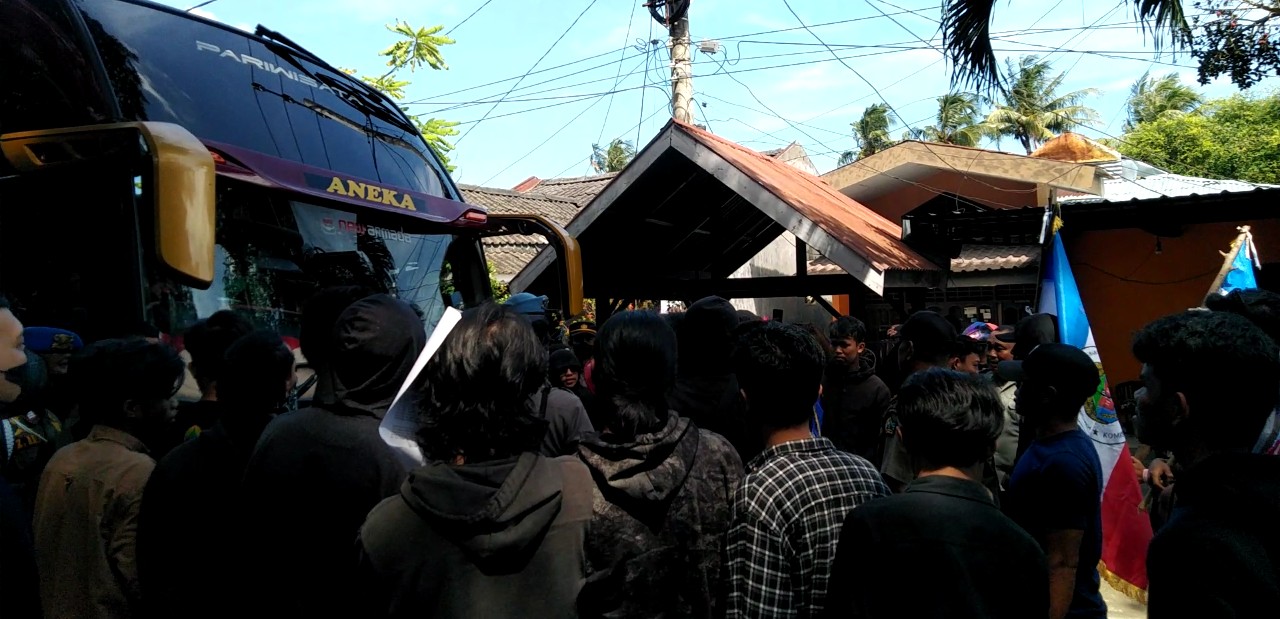 Detik-detik pemblokiran jalan poros terlihat massa sempat saling dorong dengan petugas kepolisian.