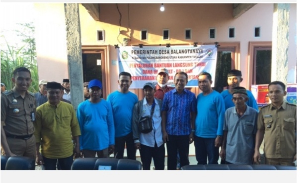 Sementara itu di tempat yang sama Kepala Desa Balangtanaya Sunardi menuturkan, pembagian BLT-DD ini kami salurkan kepada 135 penerima dan penyerahan bantuan alat pertania sebanyak 10 unit Pompanisasi dan Sprayer 50 Unit