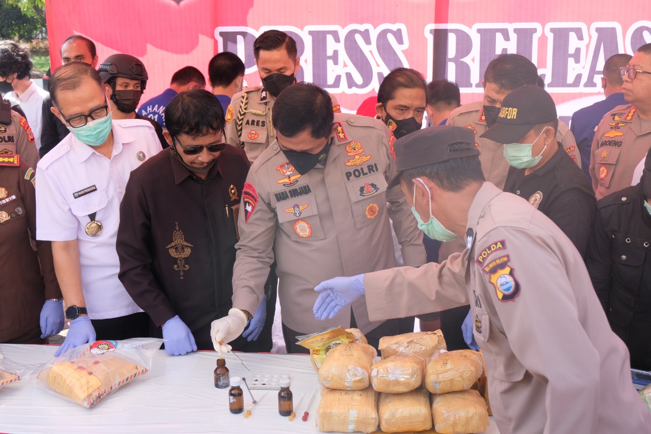 β€œKegiatan pemusnahan barang bukti Narkoba ini adalah wujud komitmen Polri khususnya Polda Sulsel dalam upaya melakukan pencegahan dan pemberantasan penyalahgunaan narkoba yang memang peredarannya di Sulsel cukup tinggi” Kapolda Sulsel Irjen Pol Drs Nana Sudjana AS, M.M.