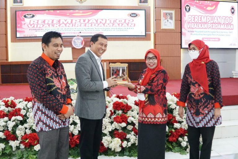 HALILINTARNEWS.id, GOWA – Sekretaris Daerah (Sekda) Kabupaten Gowa, Kamsina membuka kegiatan Perempuan Teladan Optimis dan Produktif (TOP) Viralkan Perdamaian, Pelibatan Masyarakat dalam Pencegahan Terorisme melalui Forum Koordinasi Pencegahan Terorisme Sulawesi Selatan (FKPT) di Baruga Karaeng Galesong Kantor Bupati Gowa, Kamis (11/8/2022).
