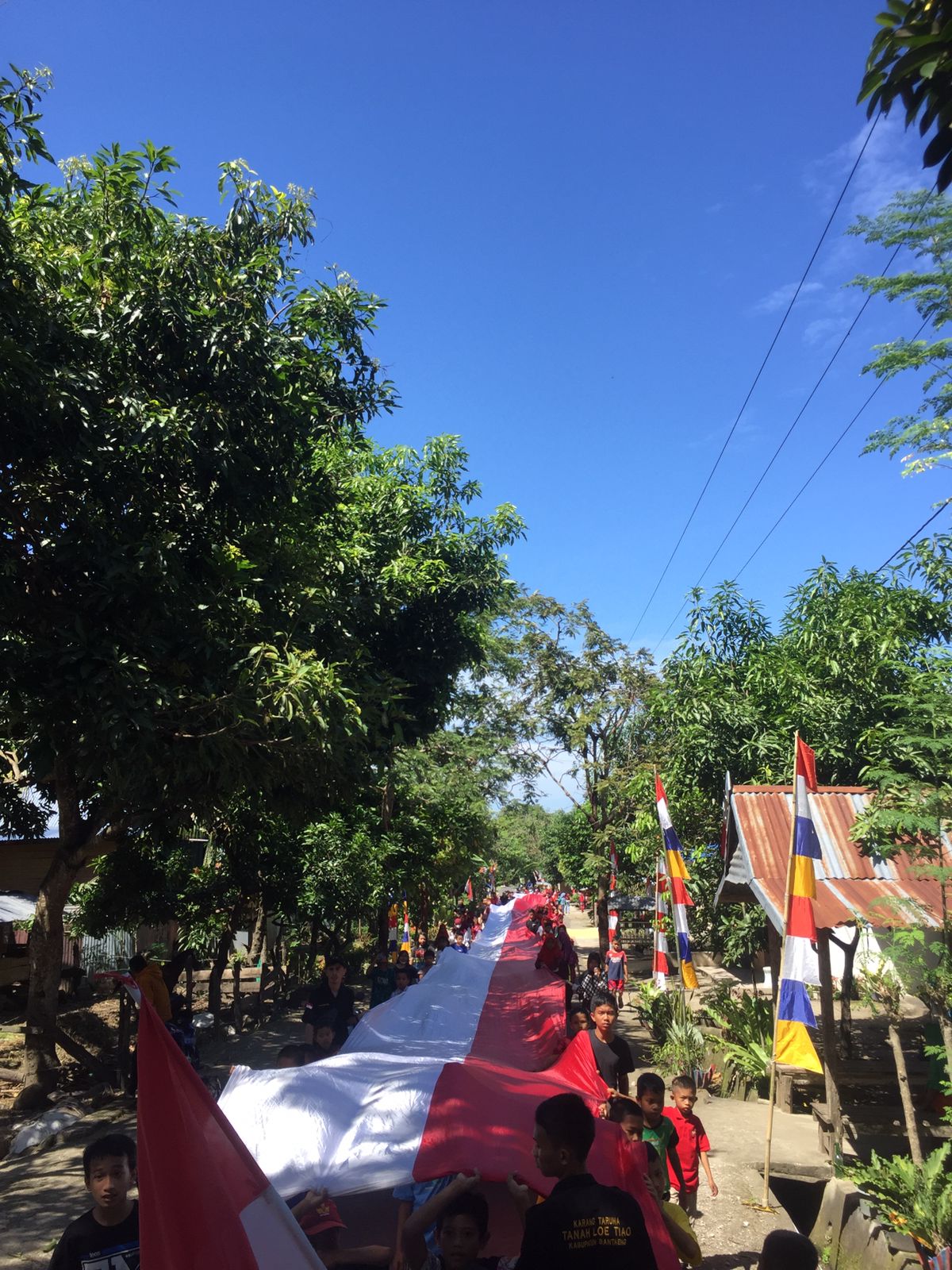 Kalian harus mengibarkan bedera yang lebih panjang tahun ini, ujar pak Alwi selaku dusun di Borongkalukua.