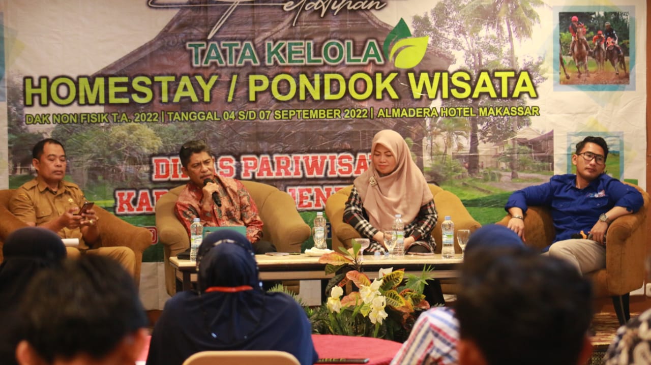 Ini penegasan Sekda Jeneponto saat bawakan materi Mengelola Destinasi Wisata Daerah, pada Pelatihan Tata Kelola Homestay/pondok Wisata, di Almadera Hotel Kota Makassar, Selasa malam (6/9/2022).