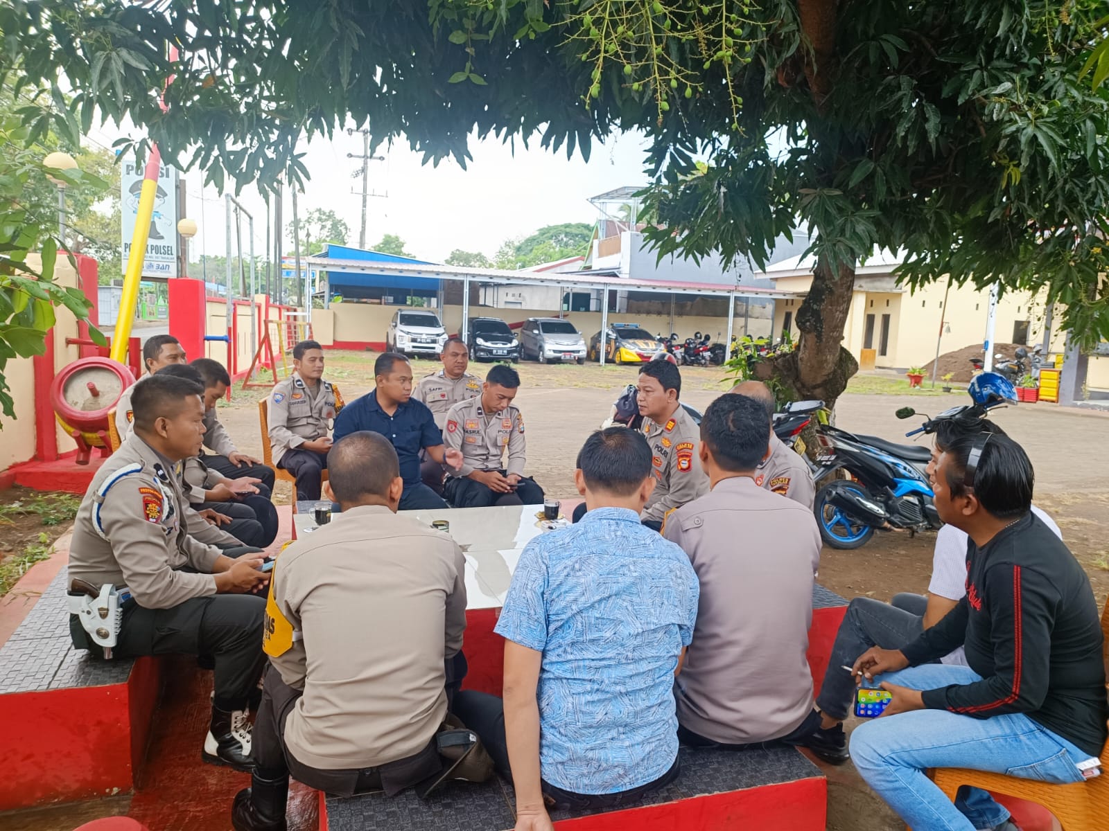 HALILINTARNEWS.id, TAKALAR –Bangun komunikasi dengan personil, Kapolsek Polsel Polres Takalar adakan Coffee Morning dengan anggotanya bertempat di taman mediasi mako Polsek Polsel, Kamis (22/09/2022) pagi.
