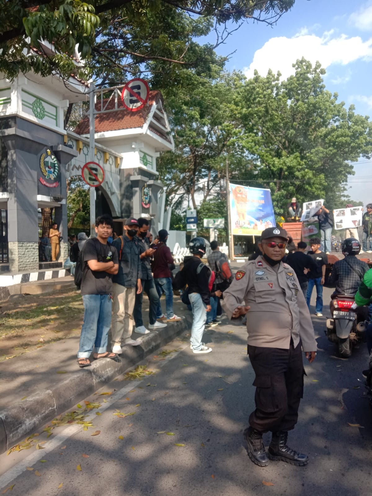 Terlihat petugas kepolisian bersama anggota Satpol PP melakukan pengamanan hingga berakhirnya aksi demonstrasi berjalan aman dan lancar.