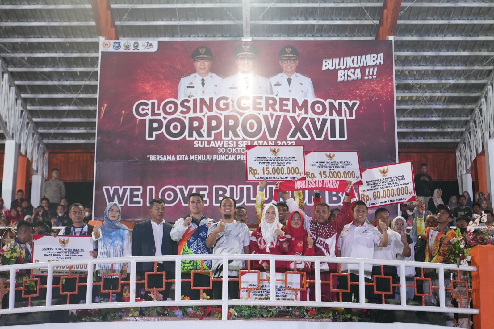 Ungkapan itu, terbukti perhatian Gubernur Sulsel, Andi Sudirman Sulaiman memberikan bonus uang pembinaan kepada atlet berprestasi. Untuk PORPROV tahun ini, Gubernur Andi Sudirman memberikan Rp 500 juta kepada juara umum 1, Kota Makassar; Rp 300 juta untuk juara umum 2, Kabupaten Pangkep; dan Rp 200 juta untuk juara umum 3, Kabupaten Sinjai.