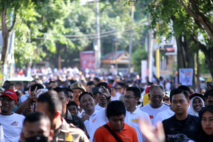 HALILINTARNEWS.id, BANTAENG — Ribuan masyarakat tumpah ruah di gerakan antimager Pemprov Sulsel di Lapangan Pantai Seruni, Kamis, 8 Desember 2022. Mereka berbaur bersama Bupati Bantaeng, DR Ilham Azikin dan Gubernur Sulsel, Andi Sudirman Sulaiman.