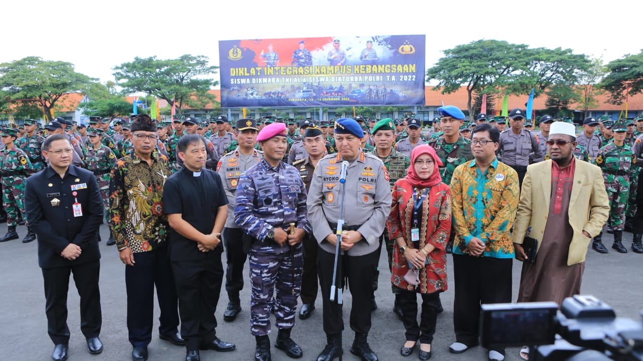 Kalemdiklat Polri Komjen Pol Rycko Amelza Dahniel memimpin Pelaksanaan Upacara Penutupan Diklat Integrasi Kampus Kebangsaan TNI dan Polri TA 2022 tersebut pada Jumat (16/12/2022) di Lapangan Laut Maluku Kodiklatal Surabaya.