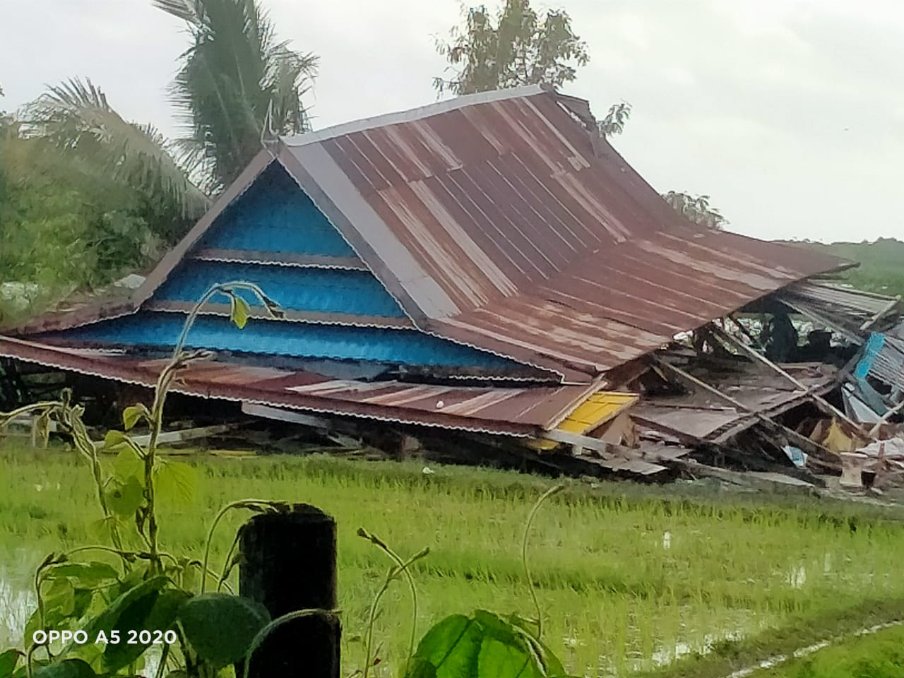 Parahnya, dengan cuaca yang sangat ekstrem kali ini, satu buah rumah warga di Desa Tuju, Kecamatan Bangkala Barat roboh rata dengan tanah akibat terjangan angin puting beliung disertai hujan deras.
