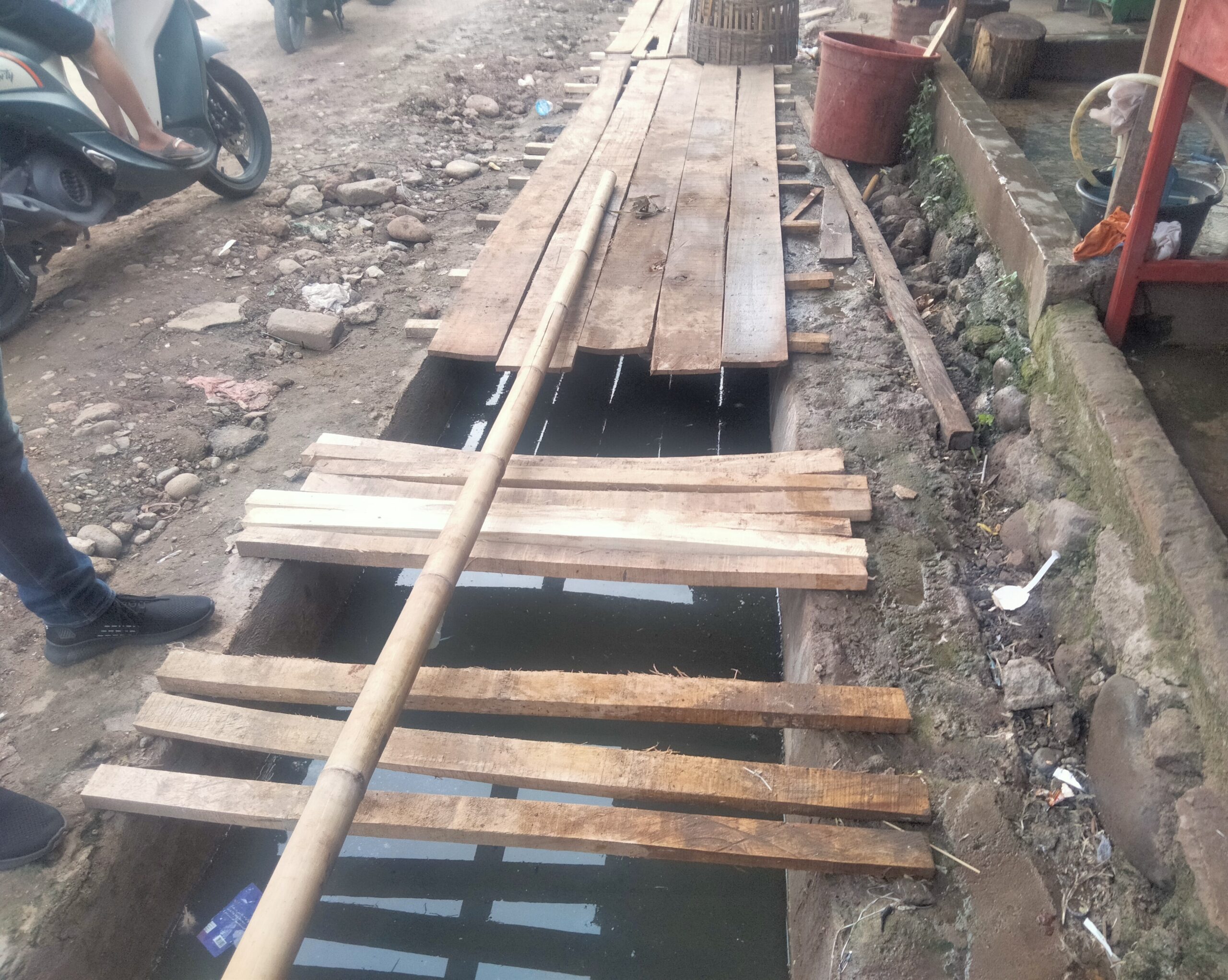 Selain itu penggalian got menggunakan scapator, hanya di gali sekeliling dalam terminal mengakibatkan jadi penampungan air bagaikan kolam renang tertampung tidak bisa mengalir dari hulu ke hilir, katanya.