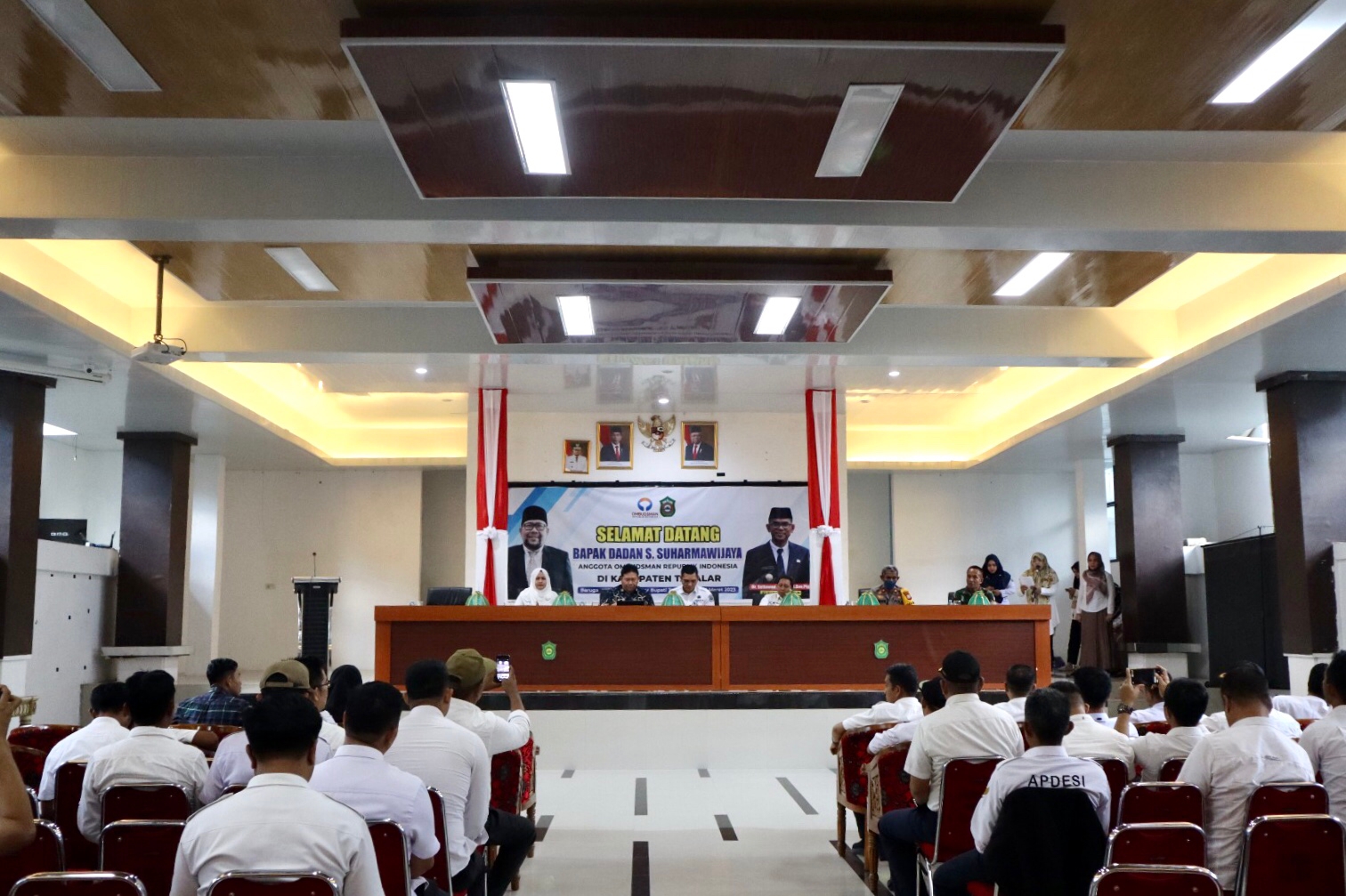 Ketua DPRD Darwis Sijaya, bersama Sekda Takalar H. Muh. Hasbi Perwakilan Forkopimda, Pimpinan OPD Takalar, Camat, dan para Kepala Desa/Lurah se-kabupaten Takalar menyambut kehadiran salah satu petinggi Ombudsman di Baruga I Mannindori Kantor Bupati Takalar.