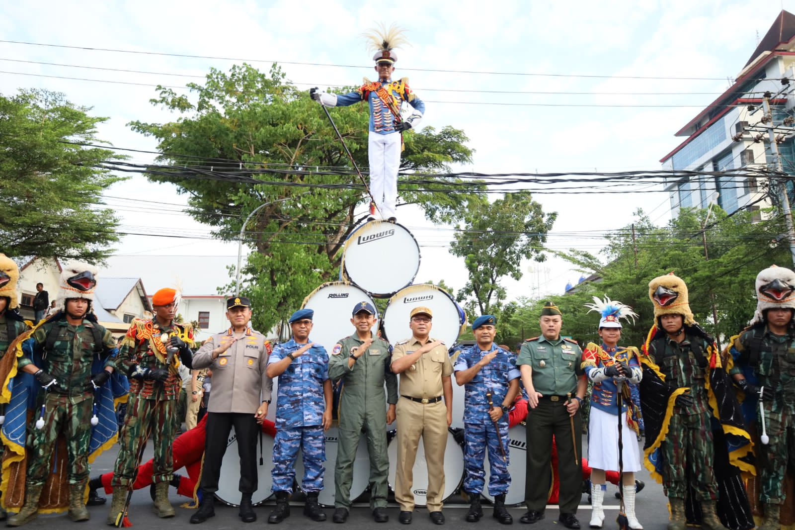 Sebelum jamuan makan malam, Danny Pomanto menyaksikan Kirab dan Display Drumband Gita Dirgantara AAU dalam rangka Cakra Wahana Paksa (CWP) di Kota Makassar.