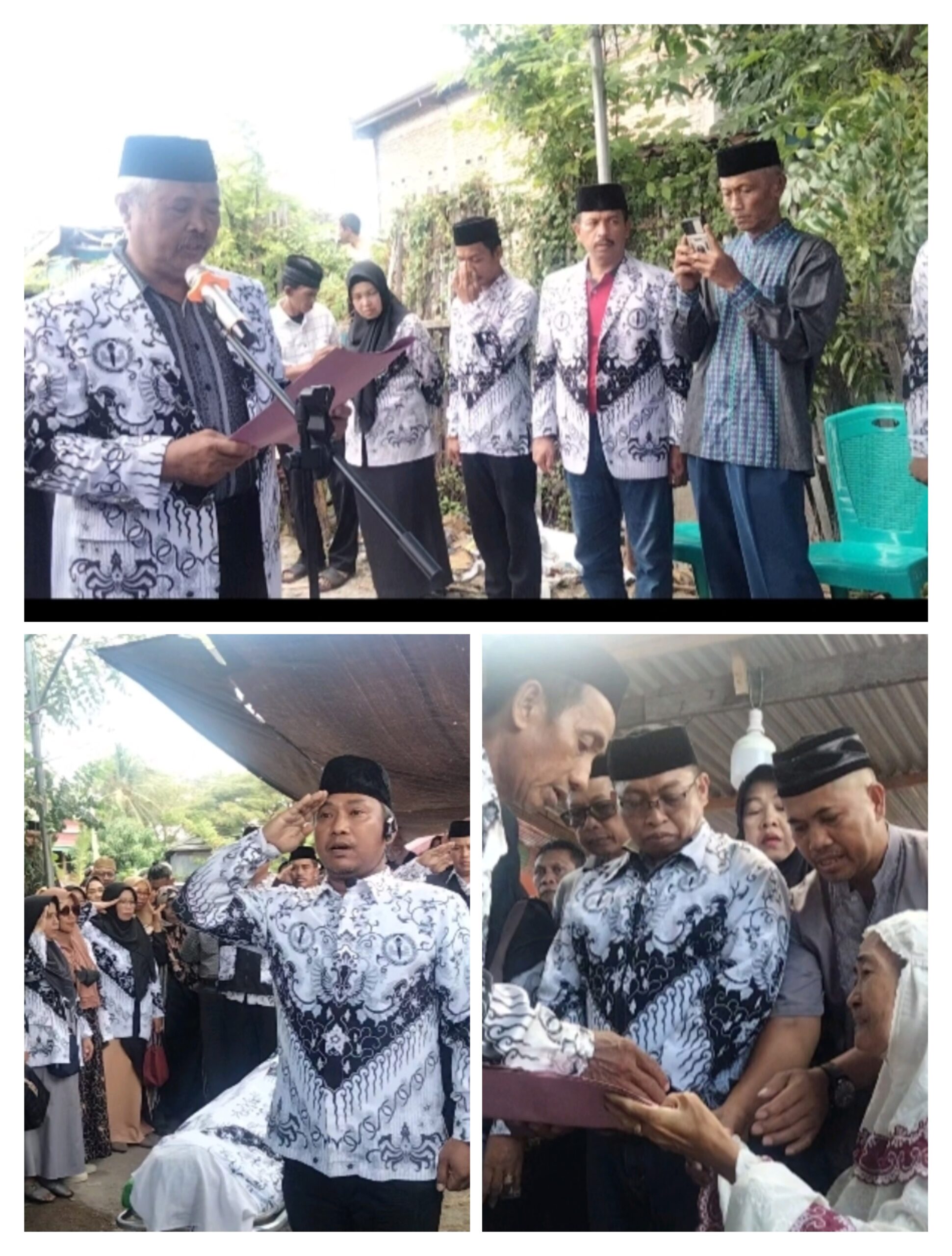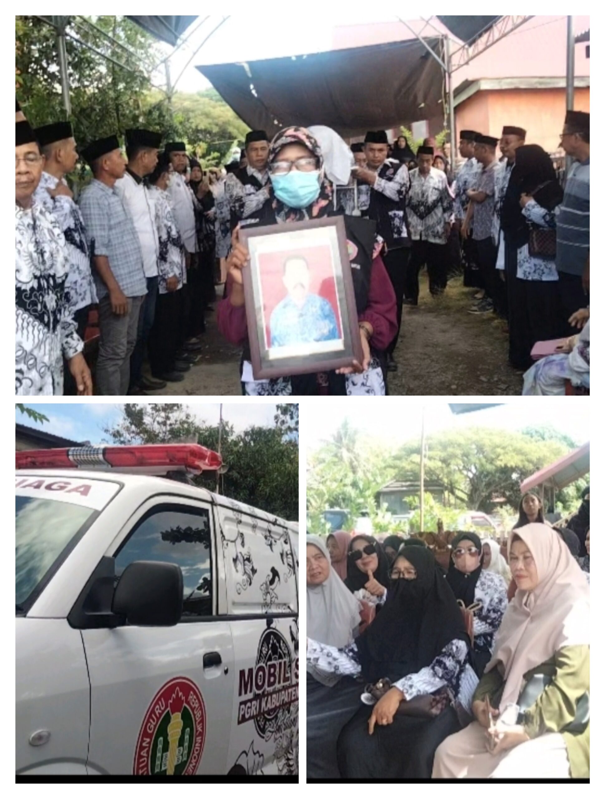 Terlihat ratusan Anggota Persatuan Guru Indonesia (PGRI) antusias berdatangan melayat ke rumah Almarhum.