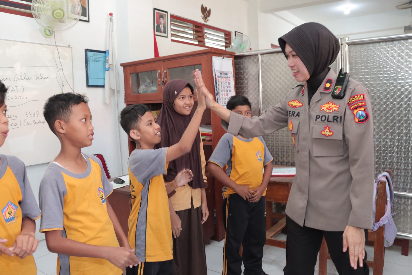 Kompol Verawaty Thaib, S.I.K., terlihat berbincang akrab dengan para guru dan siswa dengan penuh kesederhanaan dan kekeluargaan.