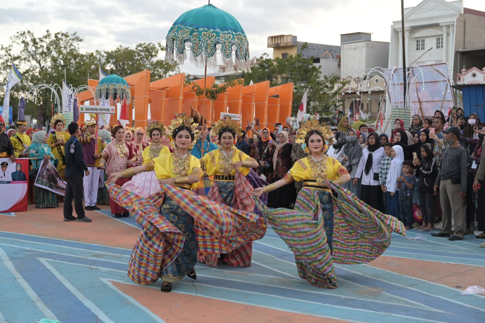 Arak-arakan Kota Makassar sangat meriah diwarnai dengan parade baju bodo bugis modern oleh pengurus Dekranasda Kota Makassar, kipas pakkarena, dan parade lipa’ sabbe (sarung tenun sutra bugis) oleh pelajar SMP Kota Makassar.