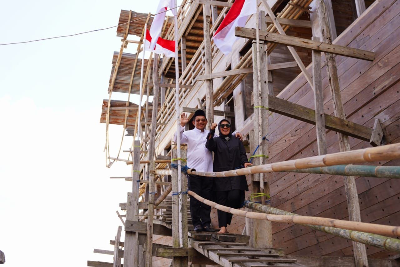 Tiba di lokasi, Tito Karnavian didampingi Bupati dan Wakil Bupati menaiki salah satu kapal Pinisi besar yang saat ini masih dalam proses pekerjaan. Untuk menaiki kapal tersebut, mantan Kapolri ini melewati titian papan kayu yang dipasang di samping geladak kapal.