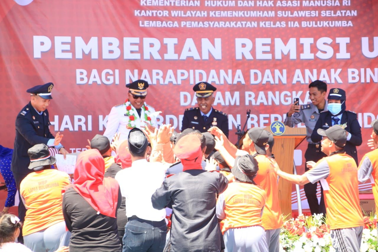 Seremoni pemberian remisi terhadap napi yang berlangsung di Lapas Kelas IIa Bulukumba itu dihadiri oleh Bupati Bulukumba, Muchtar Ali Yusuf sekaligus membacakan sambutan Menteri Hukum dan Hak Asasi Manusia (Menkumham), Yasonna H. Laoly.