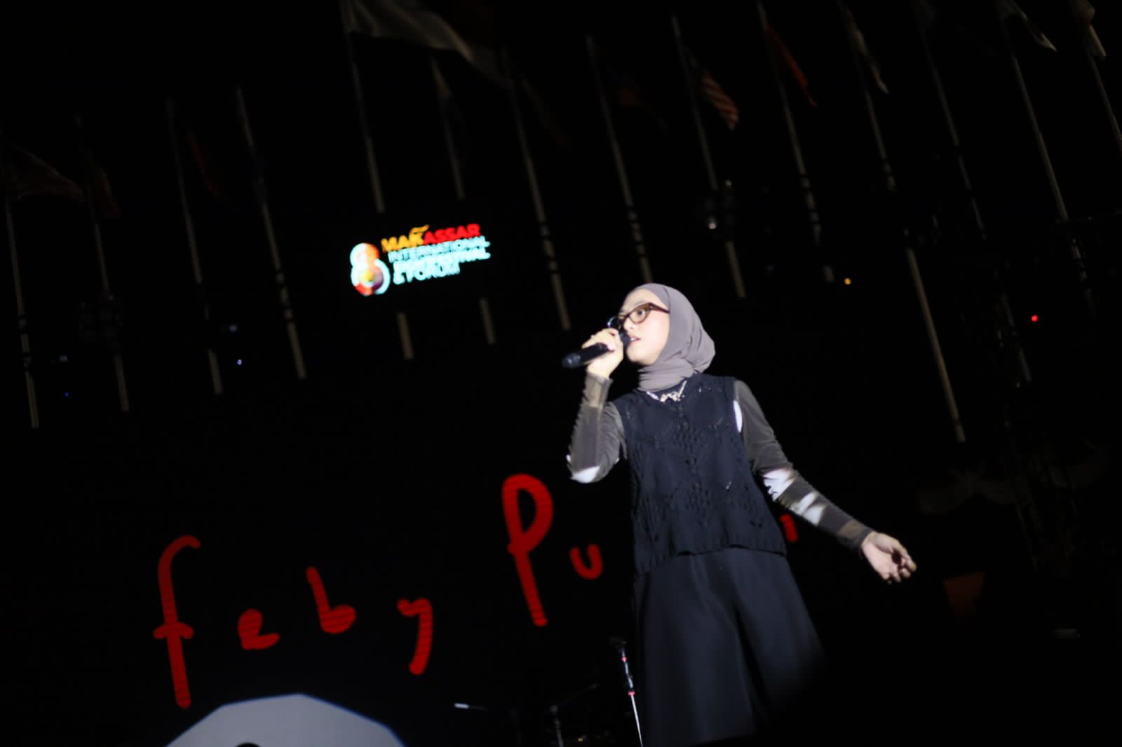 HALILINTARNEWS.id, MAKASSAR – Feby Putri Nilam Cahyani berhasil membuat galau penonton di malam kedua Makassar Internasional Eight Festival and Forum (F8).