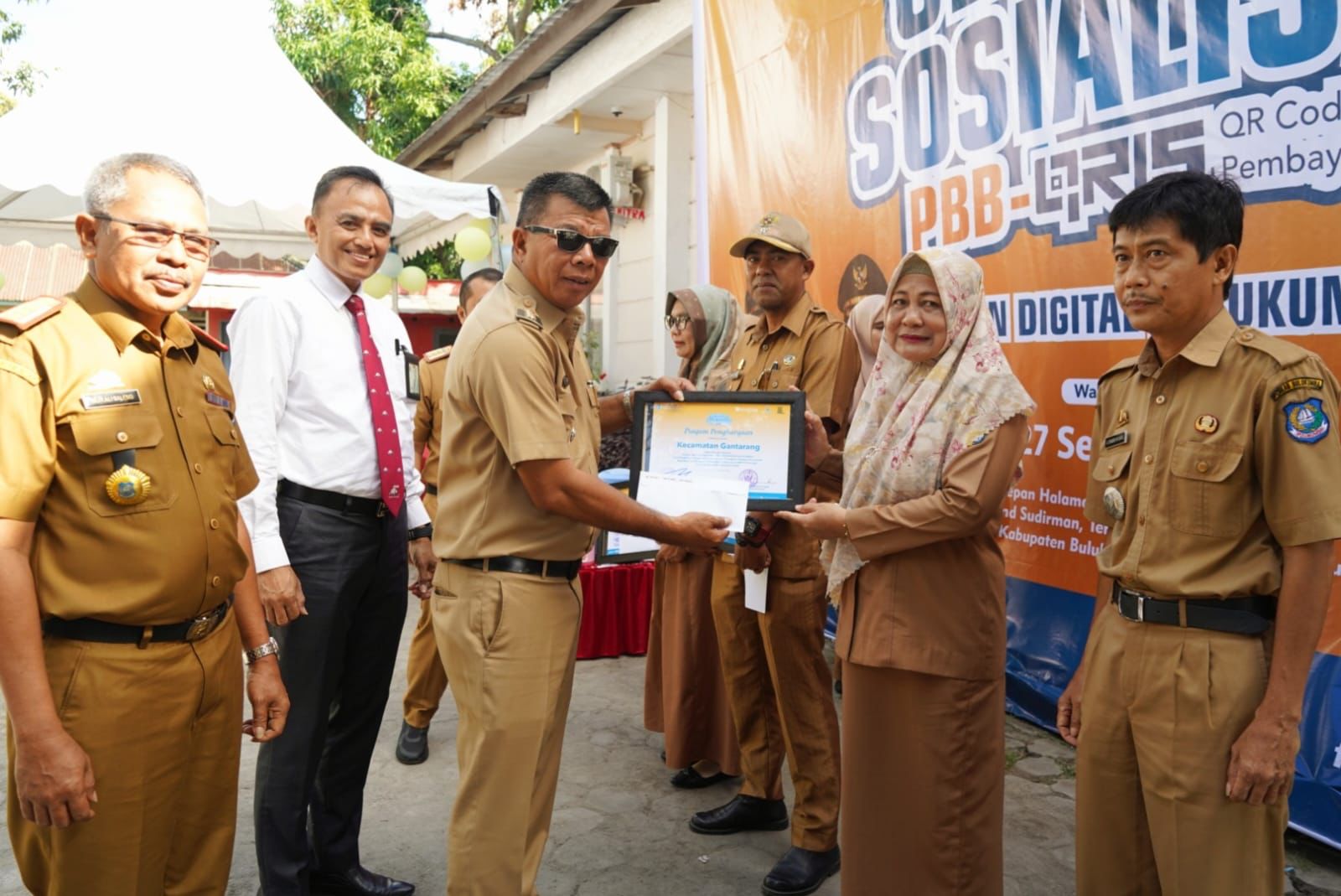 Bupati Bulukumba Andi Muchtar Ali Yusuf memberikan penghargaan kepada keempat pejabat dan kolektor tersebut saat pelaksanaan acara Gebyar dan Sosialisasi Pembayaran PBB dengan menggunakan sistem digital atau Qris di halaman Kantor Badan Pengelolaan Keuangan dan Pendapatan Daerah ((BPKD), Senin 25 September 2023.