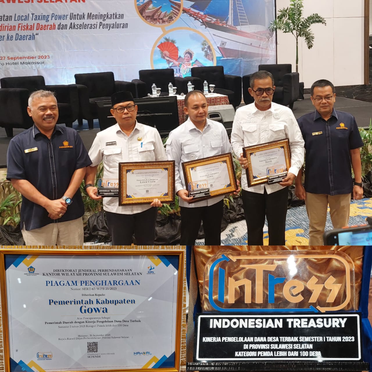 β€œPenghargaan ini diberikan atas pencapaian Kabupaten Gowa sebagai pemerintah daerah dengan kinerja pengelolaan dana desa terbaik di semester 1 tahun 2023 kategori Pemda lebih dari 100 desa,” ujarnya.