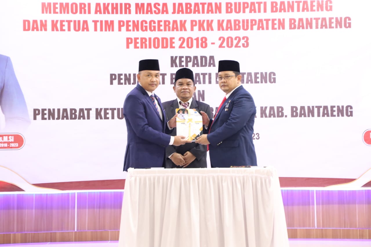 HALILINTARNEWS.id, BANTAENG – Serah Terima Memori Akhir Masa Jabatan Bupati Bantaeng, H.Ilham Azikin dan Ketua Tim Penggerak PKK Kab.Bantaeng, Hj.Sri Dewi Yanti Periode 2018-2023 Kepada Penjabat Bupati Bantaeng, Dr. Andi AbuBakar dan Penjabat Ketua Tim Penggerak PKK Kab.Bantaeng, Andi Raodhayanti berlangsung dengan khidmat di Gedung Balai Kartini Bantaeng, Senin (2/10).