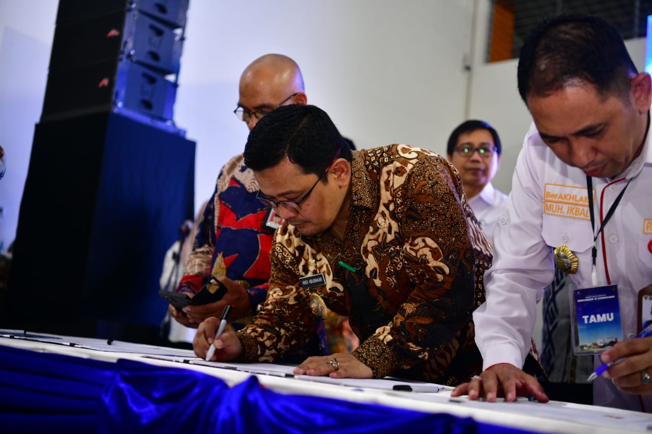 HALILINTARNEWS.id, MAKASSAR – Pj. Bupati Bantaeng, Andi Abubakar menghadiri undangan kegiatan Launching Ekspor Cargo Udara yang dirangkaikan dengan Penandatanganan Kesepahaman Bersama antara PT. Rusky Aero Indonesia Raindo United Services (RUS) dengan Pemerintah Provinsi Sulawesi Selatan dan Pemerintah Kabupaten/Kota se-Sulawesi Selatan di Terminal Cargo Freighter PT. Angkasa Pura Logistik Makassar (Bandara Lama Sultan Hasanuddin), Rabu (4/10).