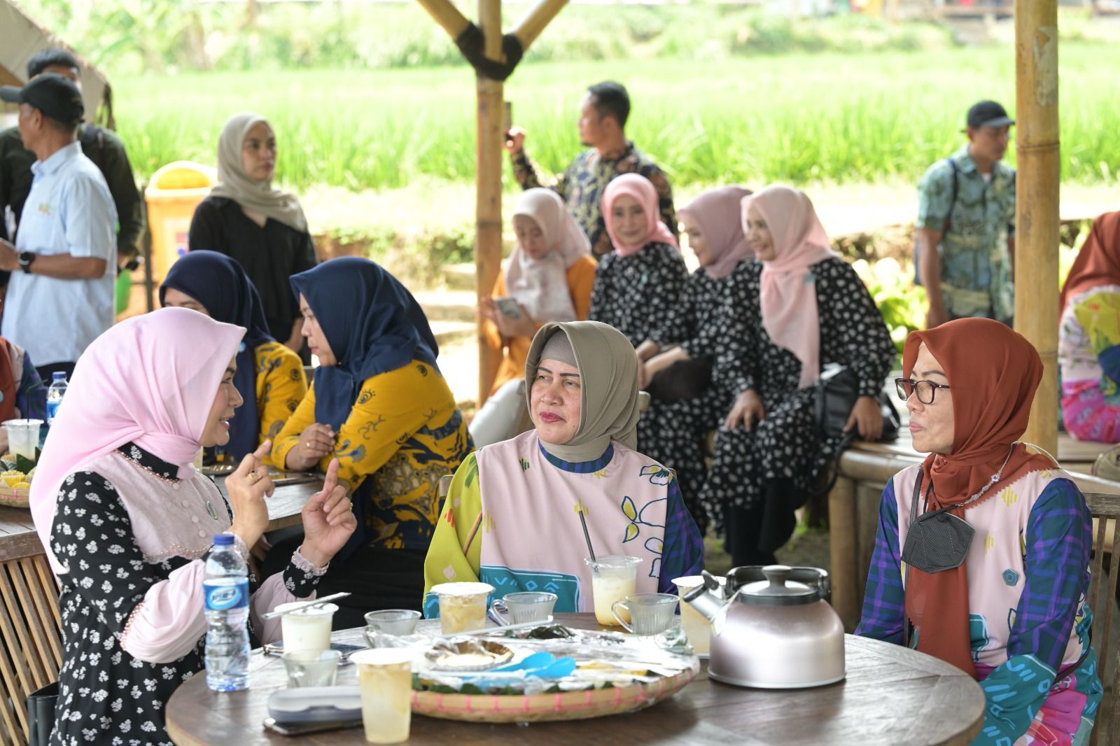 Sharing pengelolaan 10 program pokok antara TP PKK Makassar dan Bogor berlangsung santai di tengah-tengah wisata agro persawahan Kota Bogor.