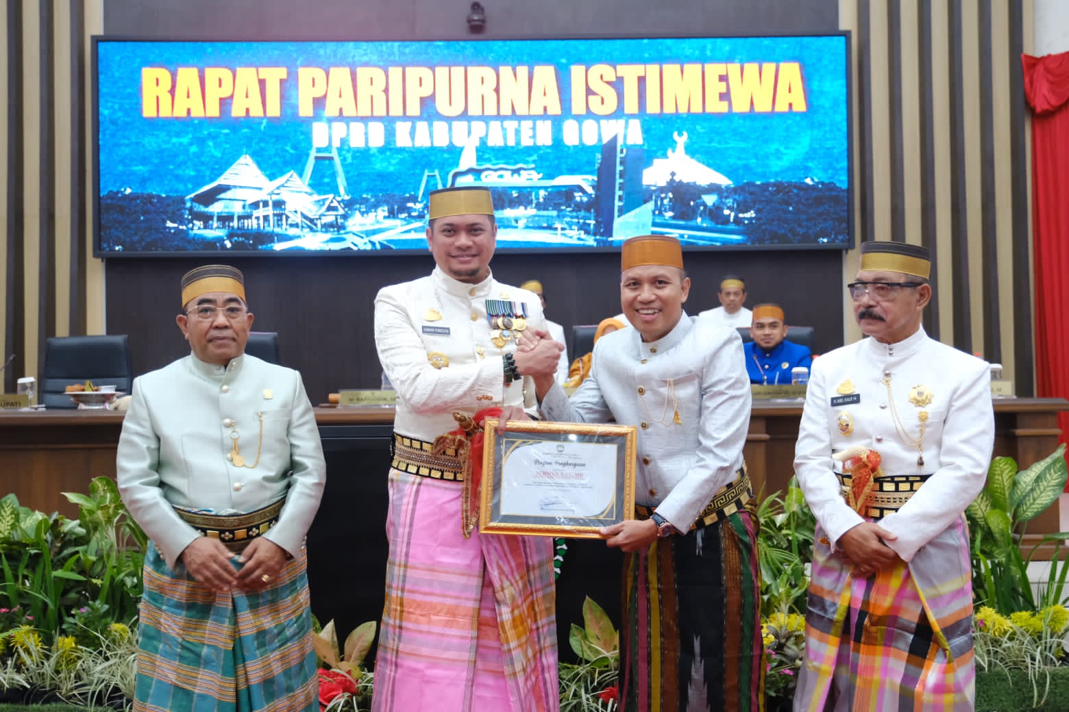 Penghargaan ini pun diberikan langsung Bupati Gowa, Adnan Purichta Ichsan didampingi Wakil Bupati Gowa, Abdul Rauf Malaganni dan Ketua DPRD Kabupaten Gowa, Rafiuddin usai Orasi Bupati Gowa pada Rapat Paripurna Istimewa DPRD Kabupaten Gowa dalam rangka Hari Jadi Gowa ke-703 Tahun di Ruang Rapat Paripurna DPRD Kabupaten Gowa, Sabtu (11/11) malam.