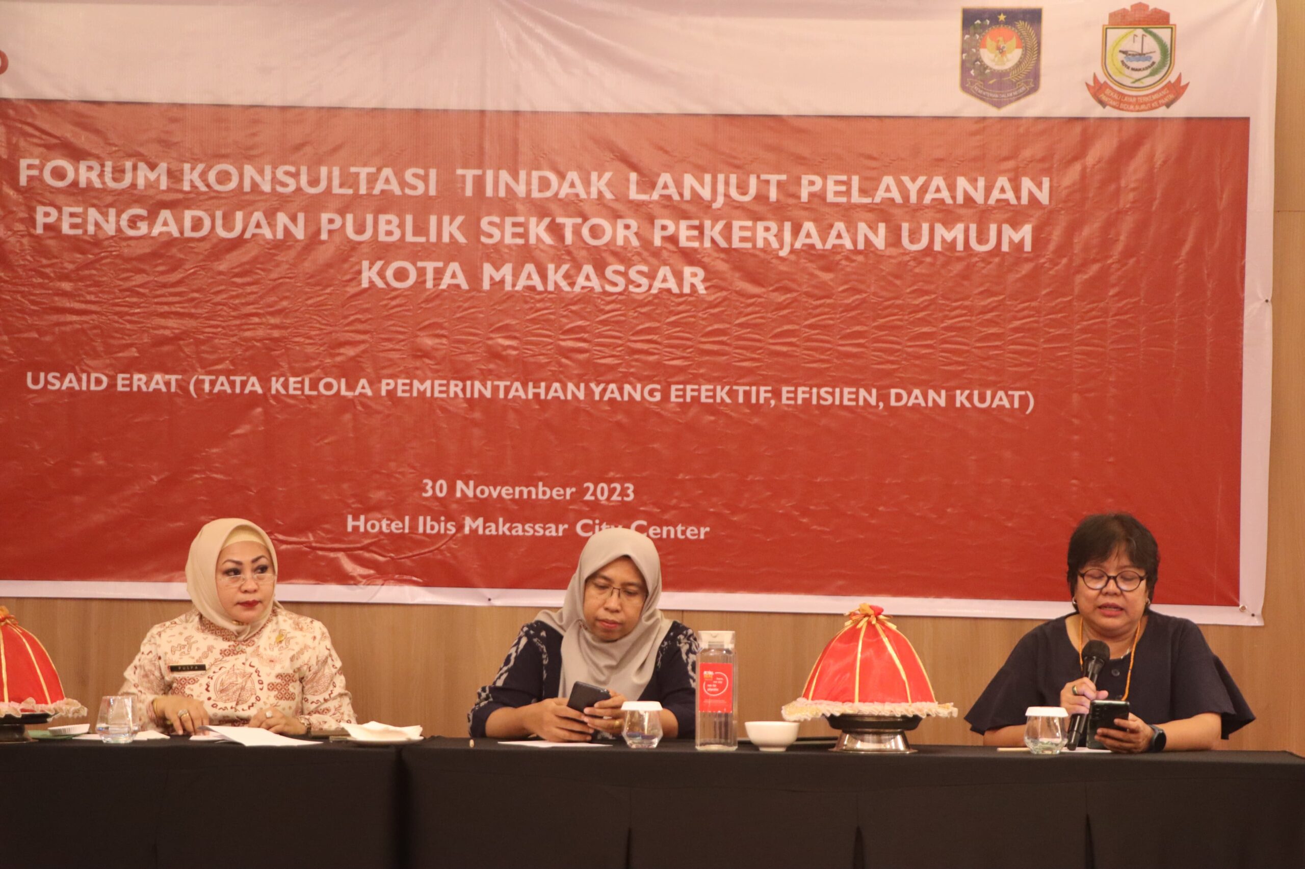 HALILINTARNEWS.id, MAKASSAR – Dinas Komunikasi dan Informasi (Diskominfo) Kota Makassar, bekerja sama dengan USAID ERAT, mengadakan Forum Konsultasi Tindak Lanjut Pelayanan Publik Sektor Pekerjaan Umum Kota Makassar di Hotel Ibis pada Kamis, (30/11/2023).