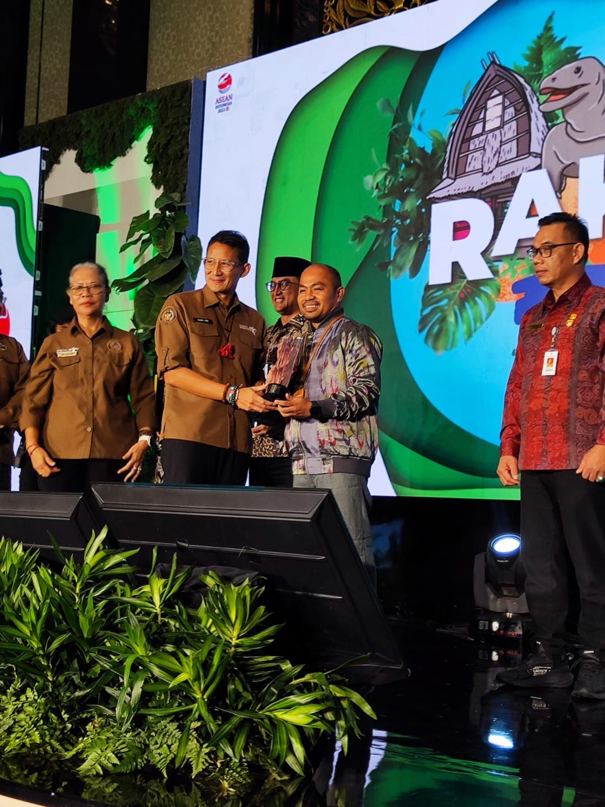 Moh Roem secara lamgsung menerima plakat penghargaan dan surat keputusan dari Menteri Pariwisata dan Ekonomi Kreatif, Sandiaga Salahuddin Uno menandai Penetapan Kota Makassar sebagai Kota Kreatif Indonesia, Rabu, 13 Desember 2023, kemarin.