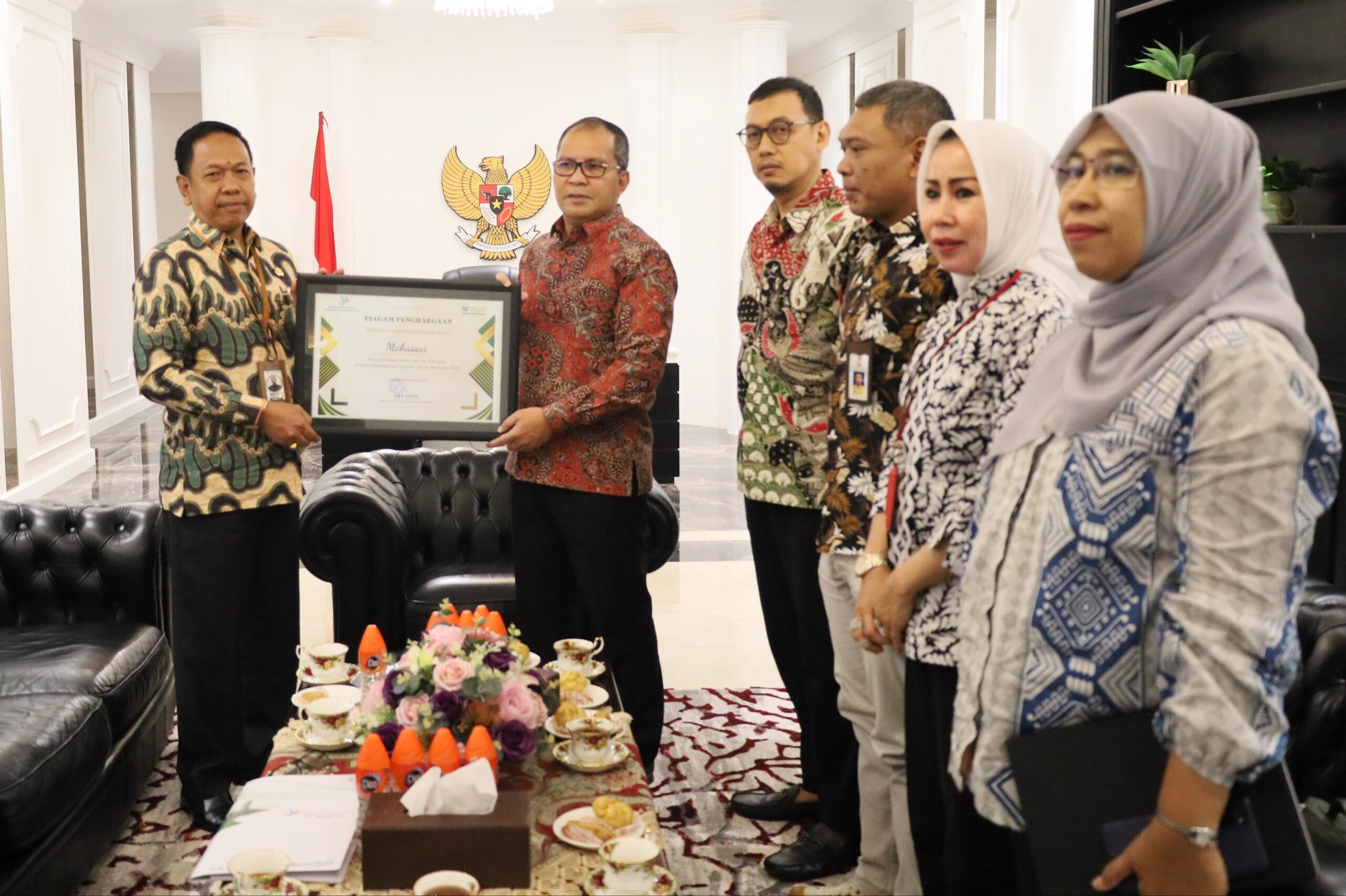 Piagam penghargaan diberikan langsung oleh BPS Kota Makassar Abdul Hafid kepada Wali Kota Makassar Danny Pomanto di Kantor Balai Kota Makassar, Jumat (12/01/2024).