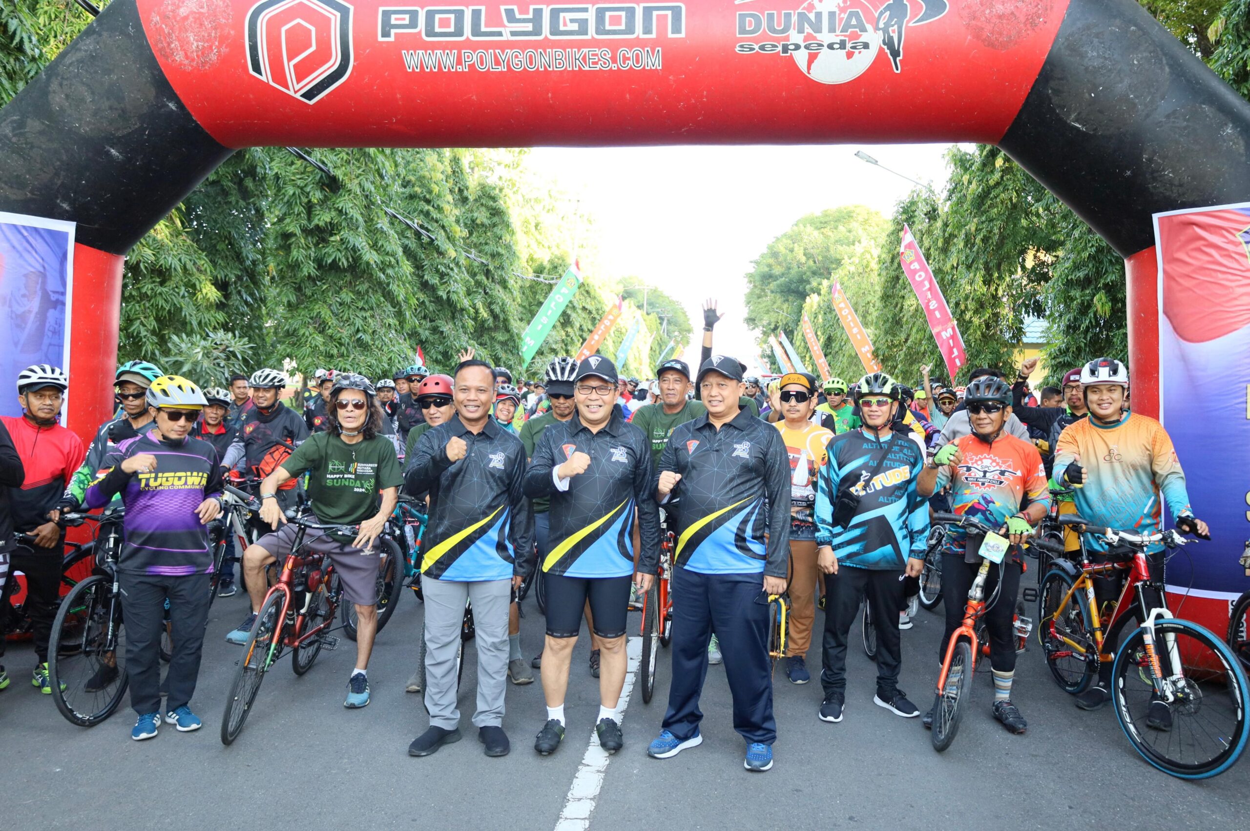 Mengenakan pakaian olahraga serba hitam, Danny Pomanto didampingi Kepala Satpol PP Makassar Ikhsan mengikuti fun bike melintasi rute sejauh 8 kilometer.