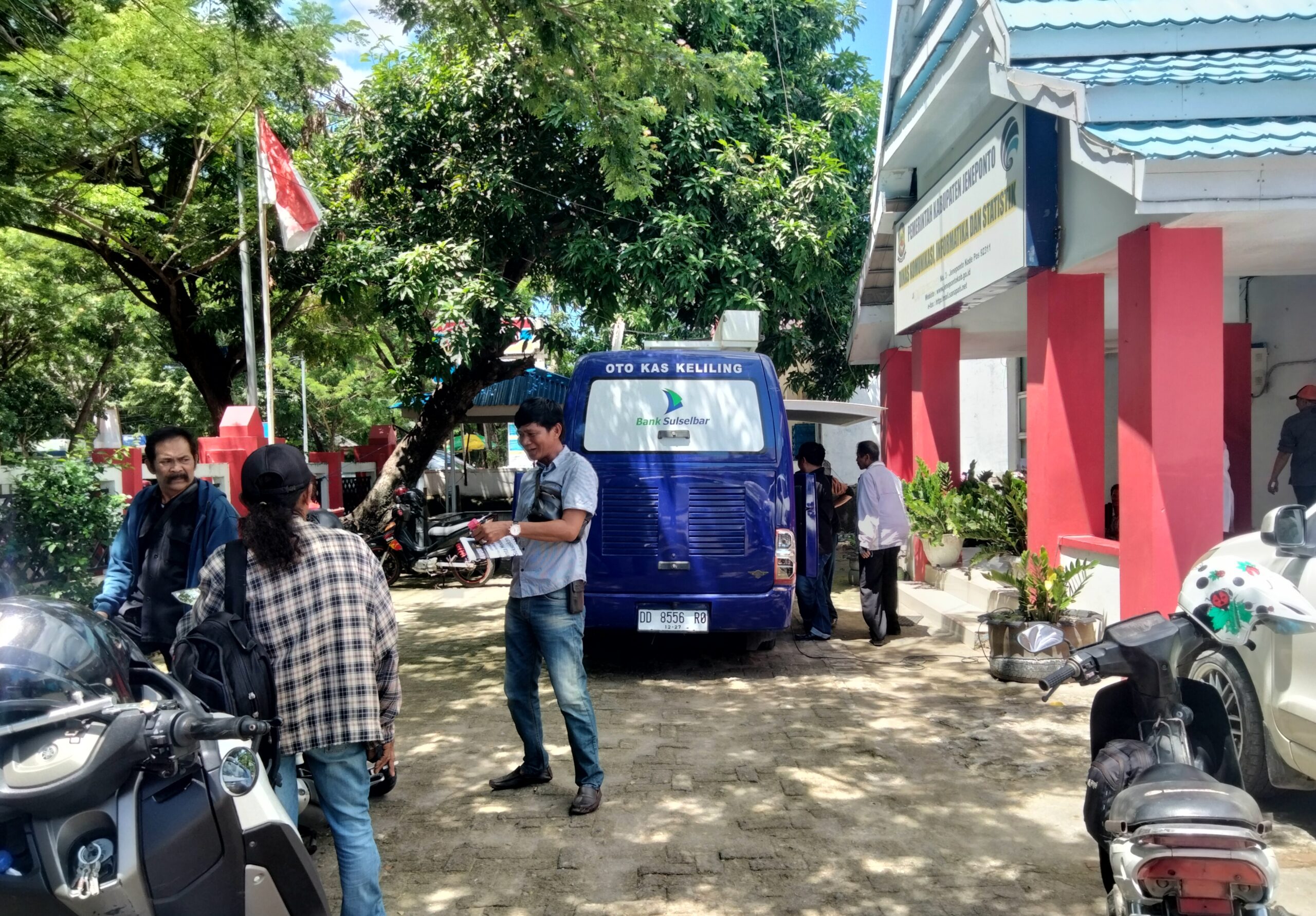 Sehingga kami mengajukan kerjasama dengan Bank Sulselbar mendatangkan petugasnya menggunakan Mobile servis di halaman kantor Diskominfotik untuk lebih mempermudah pengurusan pembukaan rekening para rekan wartawan yang belum memiliki buku rekening Bank Sulselbar.