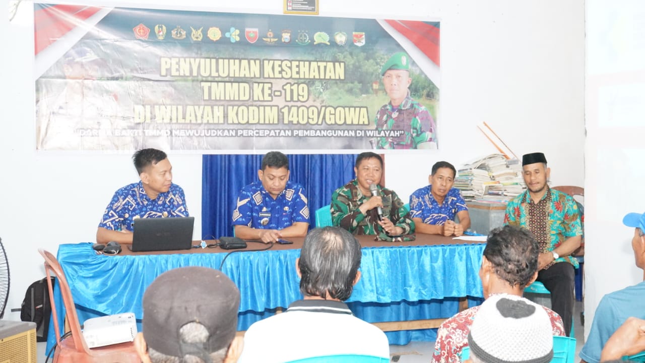 HALILINTARNEWS.id, GOWA – Dalam rangka membantu akselerasi pembangunan di daerah dan tingkatkan kemanunggalan TNI-Rakyat, selain pembangunan fisik, Satuan tugas (Satgas) TNI Manunggal Membangun Desa (TMMD) Ke-119 Kodim 1409/Gowa juga melaksanakan penyuluhan kesehatan kepada masyarakat.