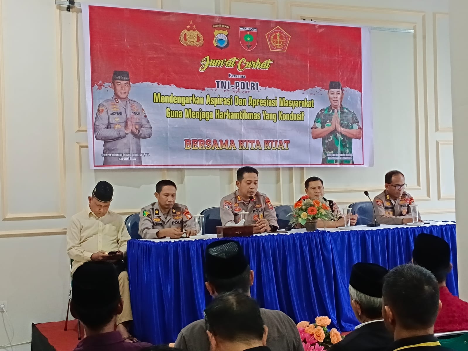 Akbp Andi Kumara mewakil Kapolda Sulsel menyampaikan Apresiasi dan ucapan terima kasih kepada seluruh masyarakat atas kehadirannya dalam kegiatan jumat curhat yg dilaksanakan