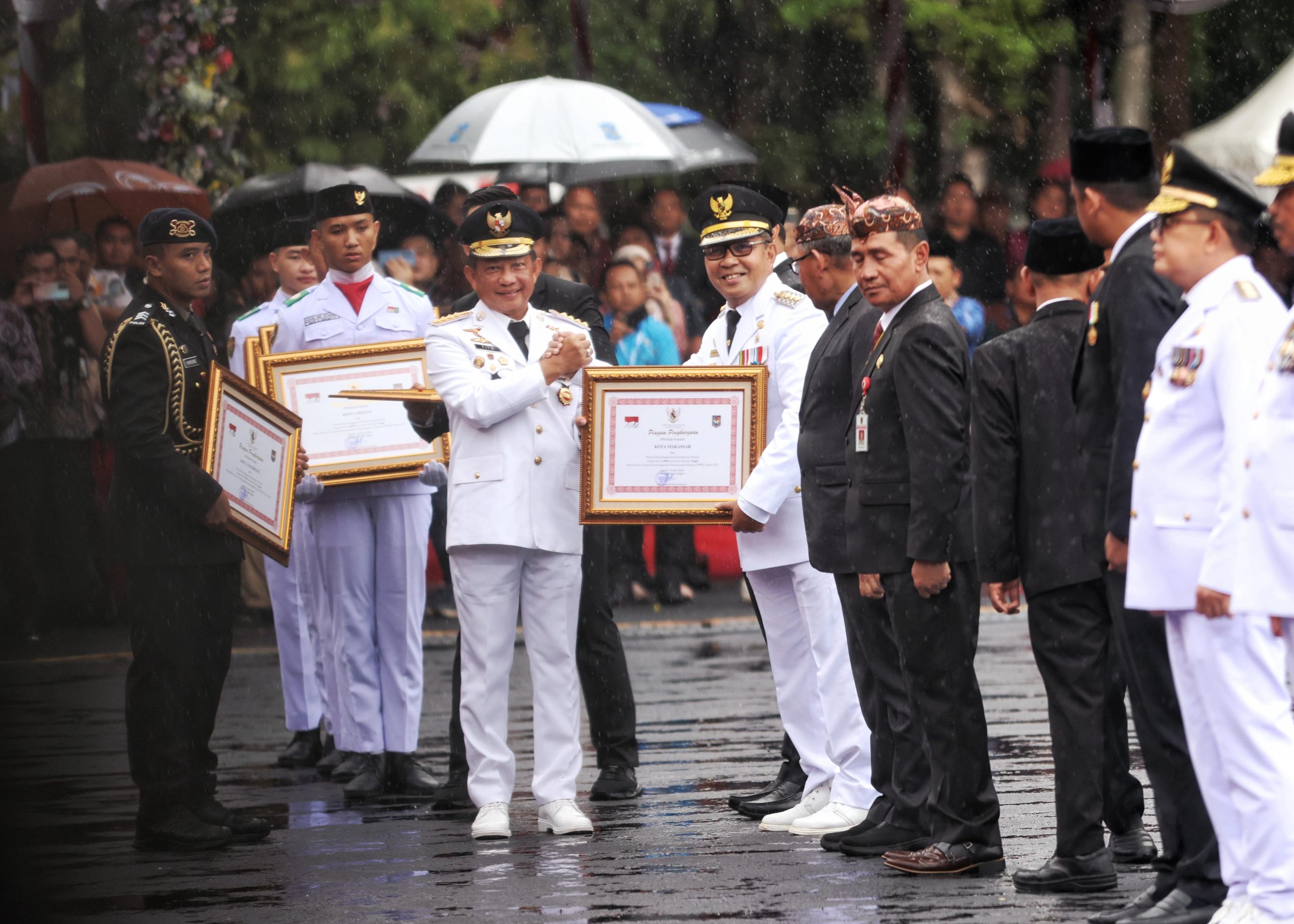 Puncak Peringatan Hari OTDA XXVIII di Surabaya juga dirangkaikan dengan penyematan tanda kehormatan Satyalencana Karya Bhakti Praja kepada penyelenggara pemerintah daerah berdasarkan prestasi dan kinerja selama menjabat.