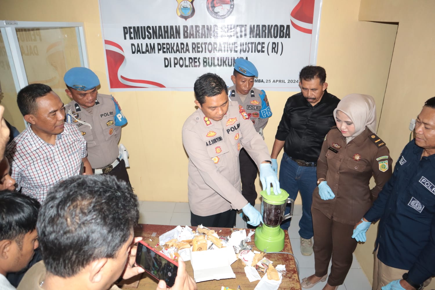 HALILINTARNEWS.id, BULUKUMBA – Satuan Narkoba Polres Bulukumba menggelar kegiatan pemusnahan barang bukti Narkoba dalam rangka perkara Restorative Justice (RJ).