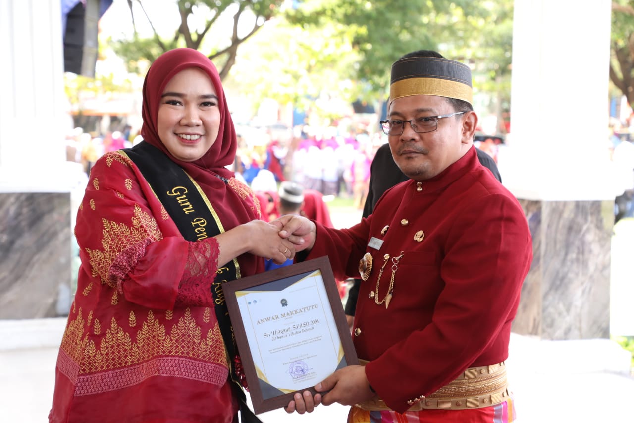 Setelah Upacara selesai, acara kemudian dilanjutkan dengan penyerahan piagam penghargaan kepada Guru dan Tenaga Pendidikan yang telah memberikan kontribusi terhadap Kualitas Layanan Pembelajaran di Kabupaten Bantaeng.