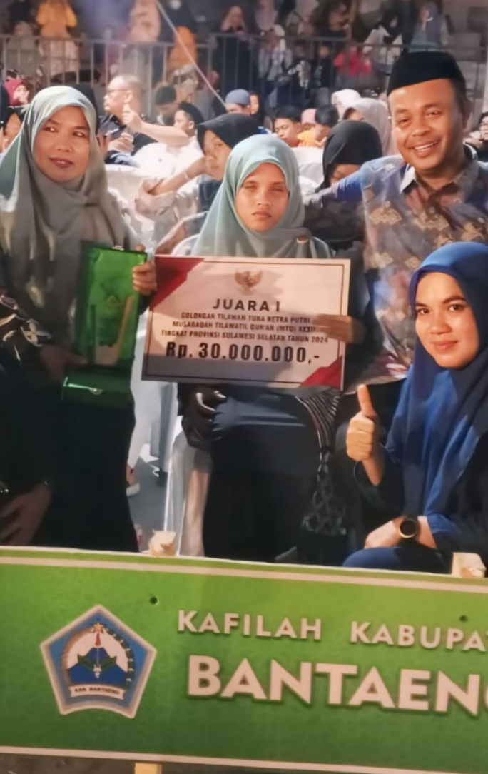Terdiri dari putra dan putri terbaik, kontingen Kabupaten Bantaeng dengan jumlah peserta sebanyak 45 orang dan mengikuti 37 cabang perlombaan, akhirnya berhasil membawa pulang 2 juara, yakni Mutmainna sebagai peraih Juara I Tilawah Tuna Netra Putri dan Nur Bintang Qurahmi sebagai peraih Juara Harapan I Khat Kontemporer Putri.